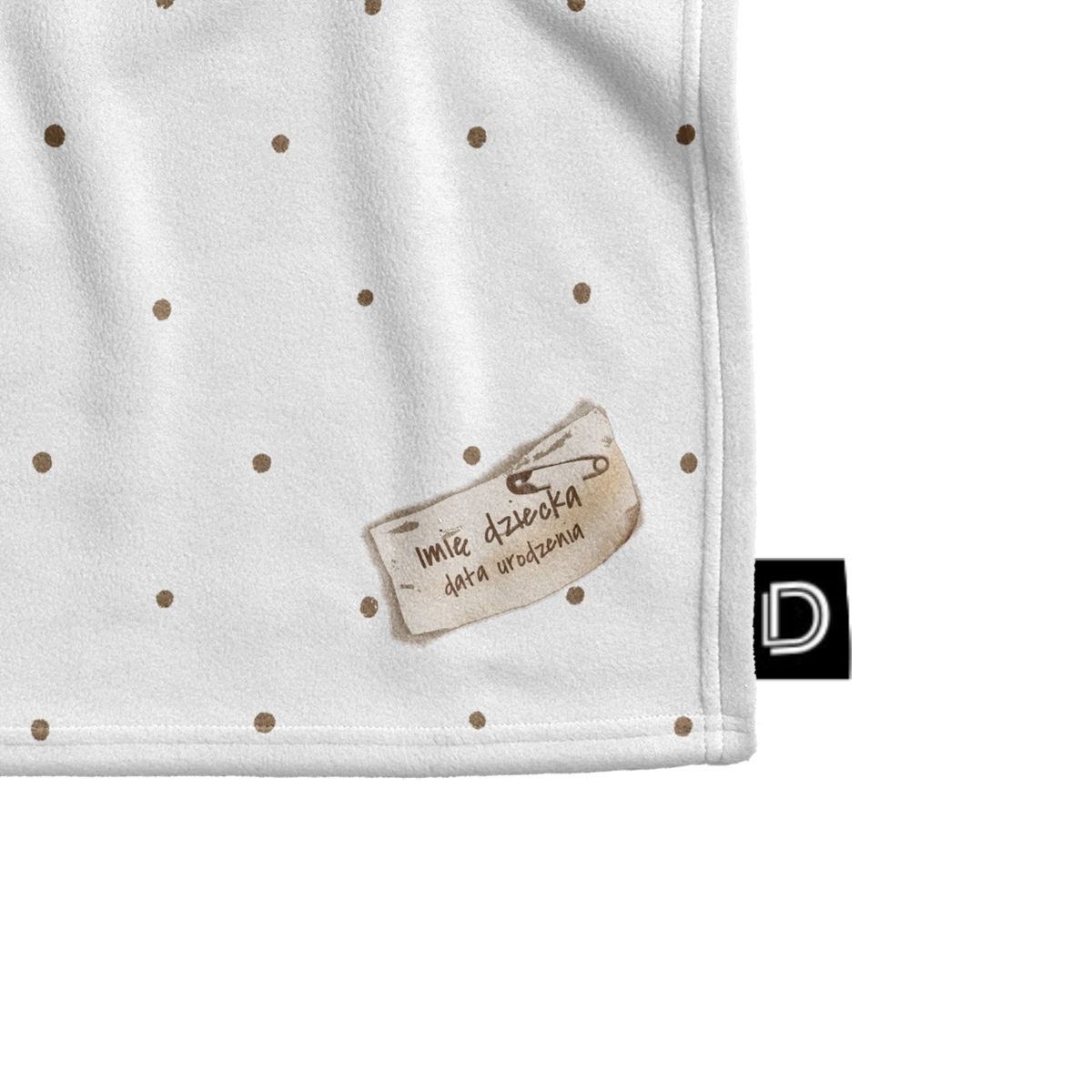 Koc pluszowy dla dzieci NEWBORN z metryczką wzór NB26 | drobne kropeczki
